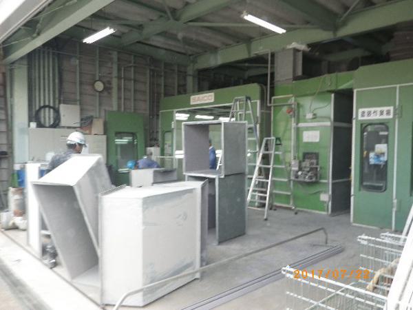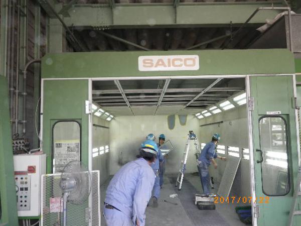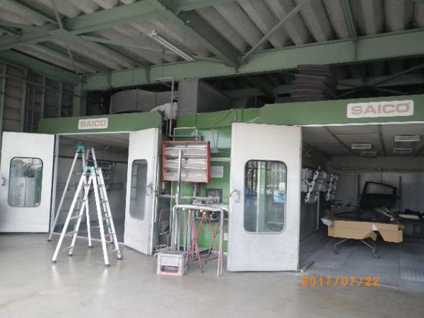 そう、新型塗装ブースの導入プロジェクトです。当社には2基の塗装ブースがありますが、先ごろからの研修会等含め、水性塗料に対応した塗装ブースを導入するべく昨日からブースの解体作業に入りました。