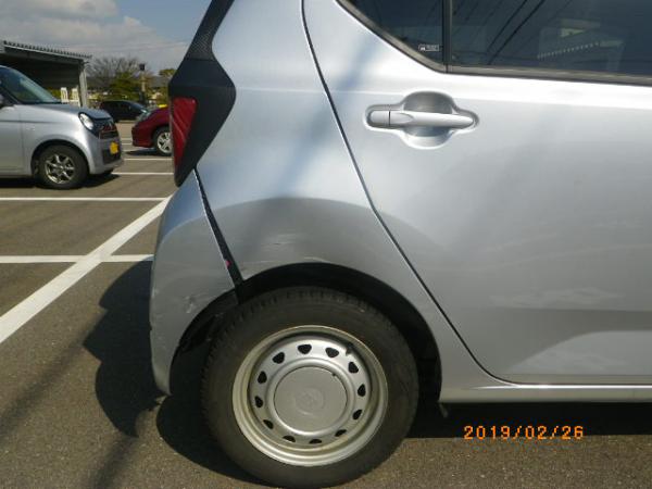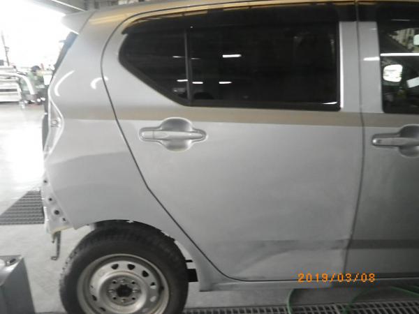 さて、当社のメインディッシュな鈑金塗装の記事を久々に紹介いたしますね。H様のプレオ+!保険案件の右後部の損傷でした。