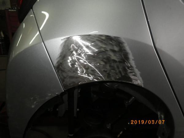 作業内容はリヤバンパーの取替え、右クオータパネルの鈑金、塗装!右リヤのスチールホイールの交換が今回の作業依頼です。