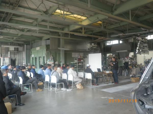さて、これも先週の土曜日の話ですが、当社にて勉強会が開催されました。日頃、皆様のぶつけた、事故を起こした車を修理している工場様を対象に、富山県、石川県から凄腕の鈑金塗装のボデーショップ様が当社に集結。