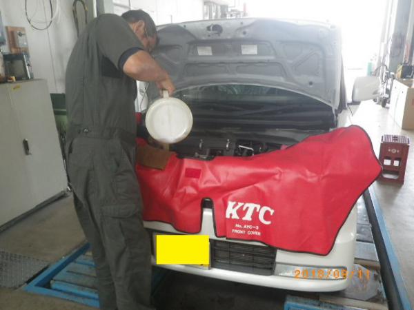 今日は、K様のピクシススペースのエンジンオイル&エレメント交換からスタートしました。皆さん、定期的なエンジンオイルの交換をお勧めいたしますよ。K様、この後引き続き車検に入ります。入念にチェック入れていきますよ!!