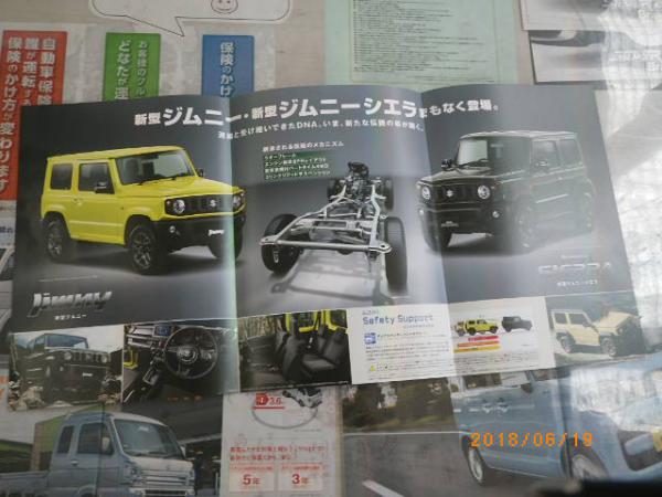 いやぁ本当に20年、マイナーチェンジを繰り返し、大きく姿を変えなかった「ジムニー」ですが、今回のフルモデルチェンジでは原点回帰なのか?と思わせるようなフォルムです。当社にプレカタログがございますので、気なる方は是非立ち寄ってみてくださいね。それにしても、インパネの感じ、特にメーター周りに懐かしさを感じます。