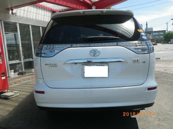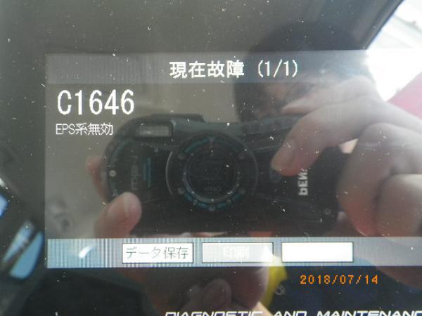 今回のクランケは写真のエスティマHVです。修理内容はフロントバンパーの交換だけでしたが、完成検査時にスキャンツールを使ったところ、EPS(電動パワステ)に故障コードが入っていることが判明いたしました。当然、そのままでも運転できるとは思いますが、今回はスキャンツールを使用してEPSの故障コードを消去しておきました。