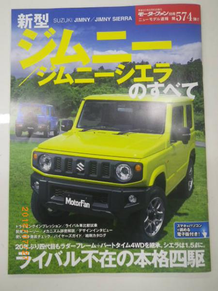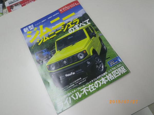 今日はいつもの・・・・・・・。スズキ自販の凄腕営業マン(毎度おなじみの)K氏が巷で大ブレイク中のスズキジムニーの特集本、「ジムニーのすべて」をいち早く届けてくれました。何でもネットやら巷のウワサでは納車まで1年やらかかるという大人気車種だそうです。私の初めての愛車もジムニーだったので、今回のフルモデルチェンジに懐かしさを感じました。私の当時の愛車は重ステ、手巻きウインドガラス、エアコンなしに550ccの排気量、時速90kmを超えるとキンコンカンコンとチャイムが鳴り、高速道路ではどんだけ頑張っても90kmが限界でした。タコメーターは常にレッドゾーンを指し、それは今では考えれないような・・・・・・。でも当時頑張ってバイトして買った車でしたので愛着もひとしお、色んな所に連れて行ってくれたのを思い出します。