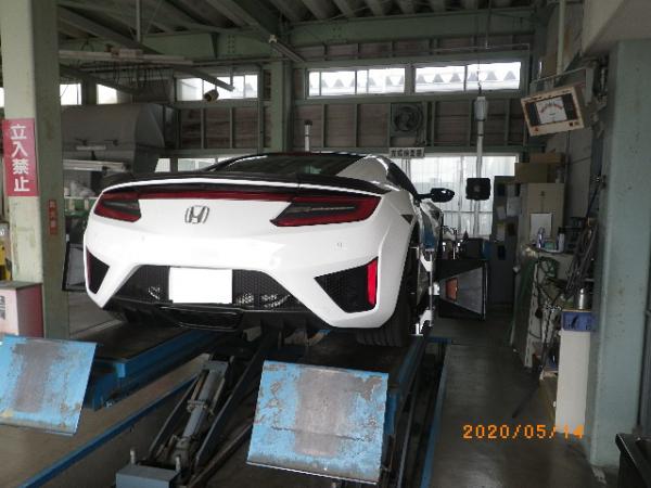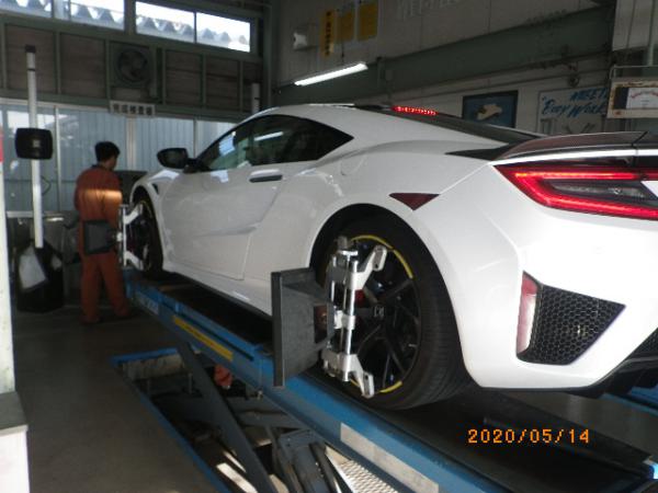 皆様こんにちは。本日はホンダの渾身のフラッグシップカーであります、NSXのアライメント調整の依頼を承りました。実物を初めて生で拝見しましたが、カッコよろしいお車でした。私は外から眺めているだけで、メカニックに触っちゃダメとダメだしされちゃいました。