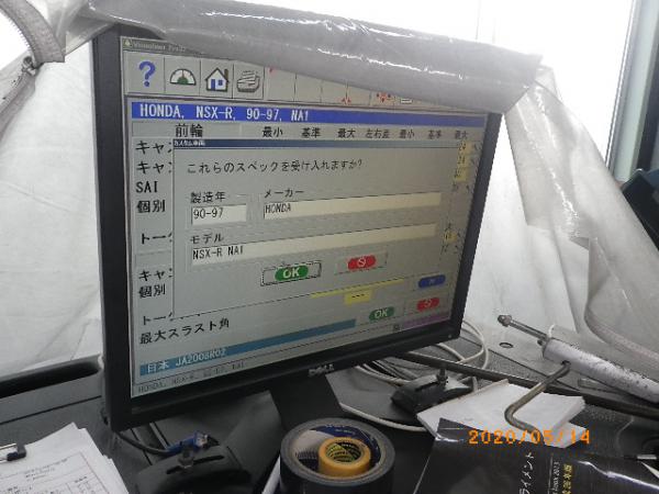 さて、このNSXなのですが、アライメントのデータスペックが恐ろしいほどに細かいんですよ。通常の乗用車の1/5と表現するのがよいのか、5倍の精度で調整するといったほうが良いのかという風にとてつもないレベルです。しかし、そのとてつもないレベルのアライメントスペックですら可能にするサスペンション構成に脱帽でした。恐るべしNSX。調整後はテスト走行を行い無事納車となりました。テスト走行すらさせてもらえませんでした。涙。